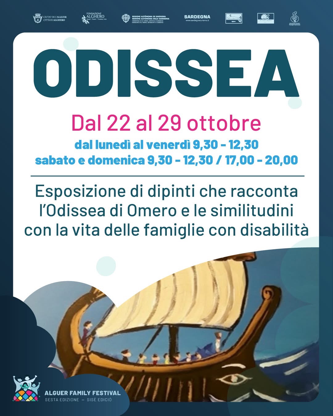 Nell’ambito dell’Alguer Family Festival 2025, la Torre Sulis di Alghero ospita “ODISSEA – Viaggio nel mondo della disabilità“, un’esposizione artistica che propone un percorso emozionante attraverso il linguaggio dell’arte, della riflessione e dell’inclusione.